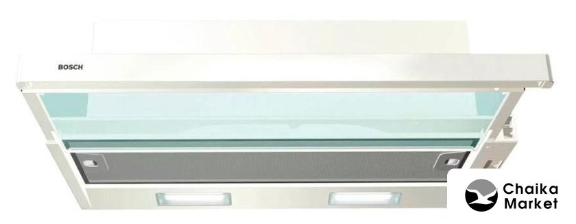 конструкция наклонная, монтаж настенный, ширина 60 см, управление сенсорное, производительность мотора 850 м³/ч, цвет белый