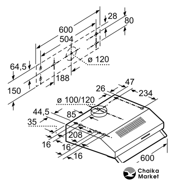 | Диаметр воздуховода | 100 мм, 120 мм |