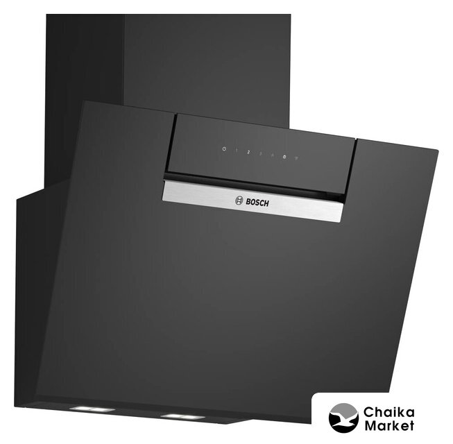 конструкция наклонная, монтаж настенный, ширина 59.8 см, управление сенсорное, производительность вытяжки 575 м³/ч, цвет черный