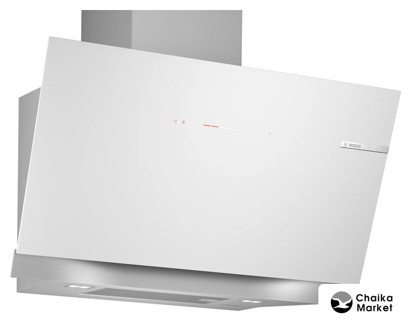 конструкция наклонная, монтаж настенный, ширина 85 см, управление сенсорное/электронное, производительность мотора 1200 м³/ч, цвет белый