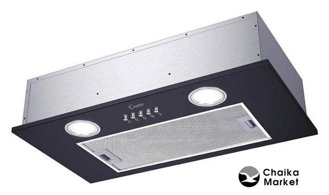 конструкция скрытая, монтаж для встраивания, ширина 73.5 см, управление механическое/кнопочное, производительность вытяжки 370 м³/ч, цвет черный