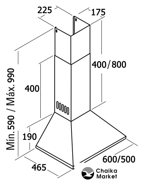 конструкция скрытая, монтаж для встраивания, управление механическое/слайдерное, производительность мотора 600 м³/ч, ширина 59.8 см