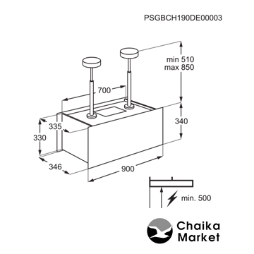 | Минимальная производительность отвода | 330 куб. м/ч |