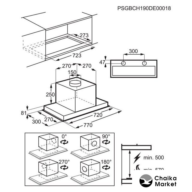 | Минимальная производительность отвода | 300 куб. м/ч |