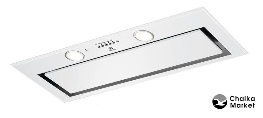 конструкция скрытая, монтаж для встраивания, ширина 54 см, управление электронное/кнопочное, производительность вытяжки 580 м³/ч, цвет черный