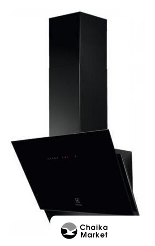 конструкция наклонная, монтаж настенный, ширина 59 см, управление сенсорное, производительность вытяжки 431 м³/ч, цвет черный