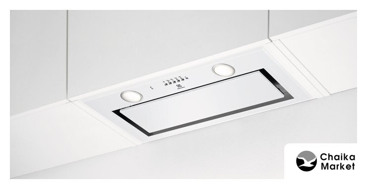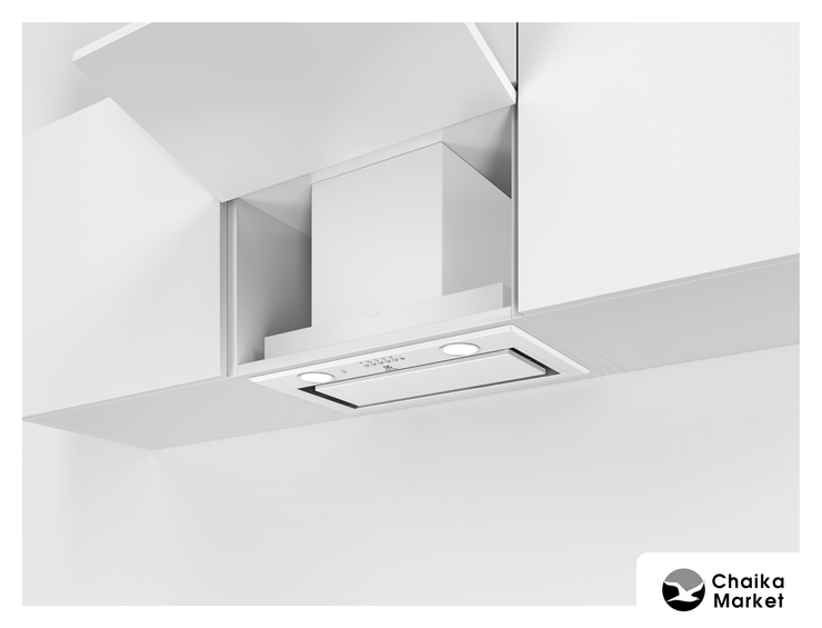 конструкция коробчатая, монтаж островной, ширина 39 см, управление сенсорное, производительность мотора 1000 м³/ч, цвет белый