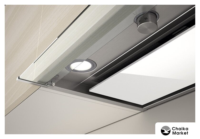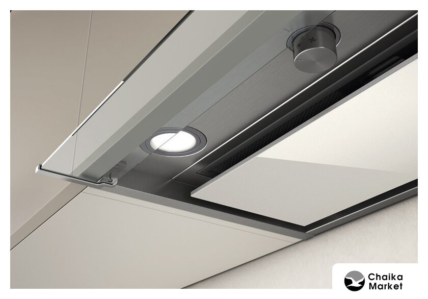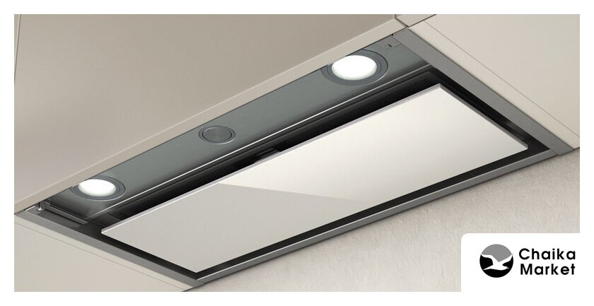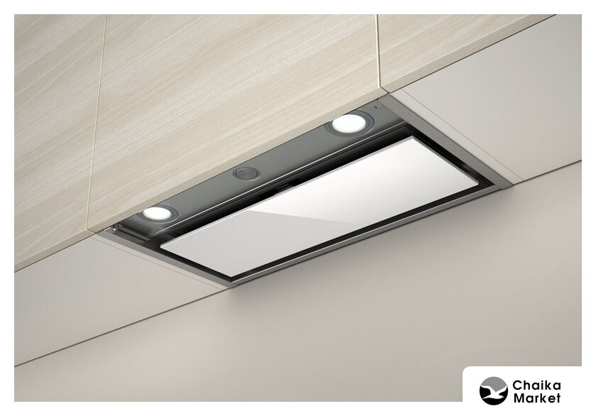 конструкция наклонная, монтаж настенный, ширина 59 см, управление сенсорное, производительность вытяжки 431 м³/ч, цвет белый