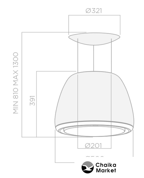 конструкция коробчатая, монтаж островной, ширина 32 см, управление электронное/кнопочное, производительность вытяжки 410 м³/ч, производительность мотора 1200 м³/ч, цвет черный