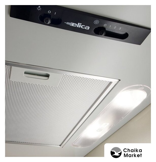 конструкция коробчатая, монтаж настенный, ширина 59.8 см, управление электронное/кнопочное, производительность вытяжки 415 м³/ч, производительность мотора 1200 м³/ч