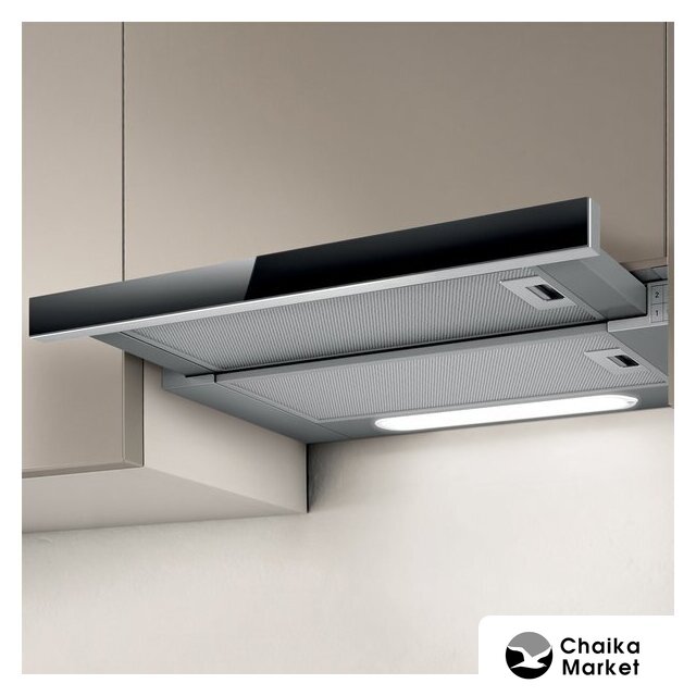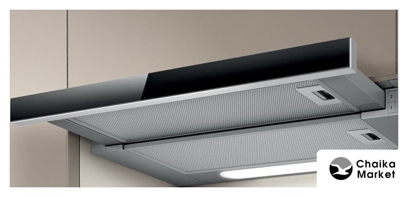 конструкция скрытая, монтаж для встраивания, ширина 59.8 см, управление механическое/кнопочное, производительность мотора 1150 м³/ч, цвет нержавеющая сталь
