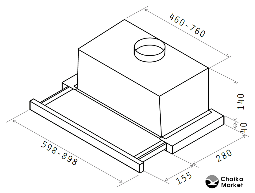 конструкция телескопическая, монтаж для встраивания, управление механическое, ширина 60 см