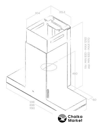 конструкция купольная, монтаж островной, управление поворотный переключатель, производительность мотора 820 м³/ч, ширина 90 см