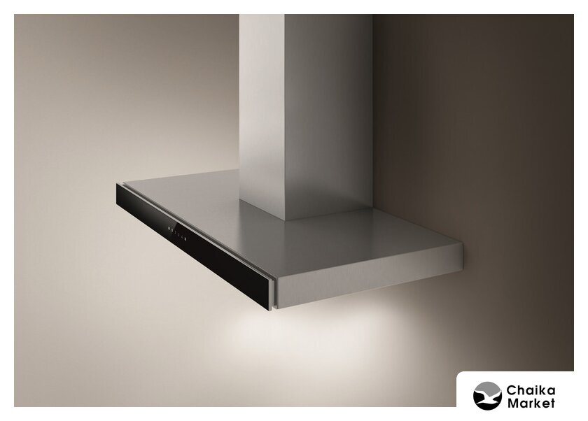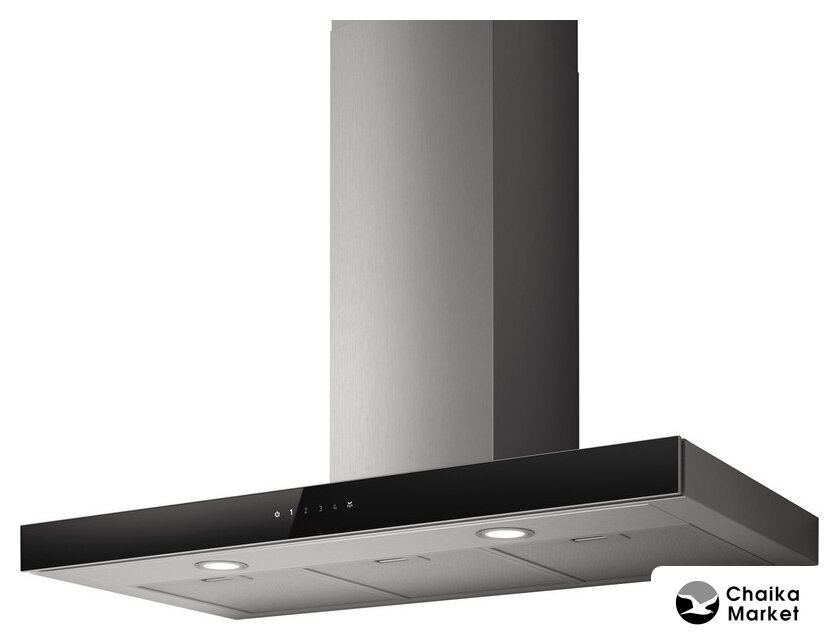 конструкция коробчатая, монтаж настенный, ширина 90 см, управление электронное/кнопочное, производительность вытяжки 577 м³/ч, цвет нержавеющая сталь