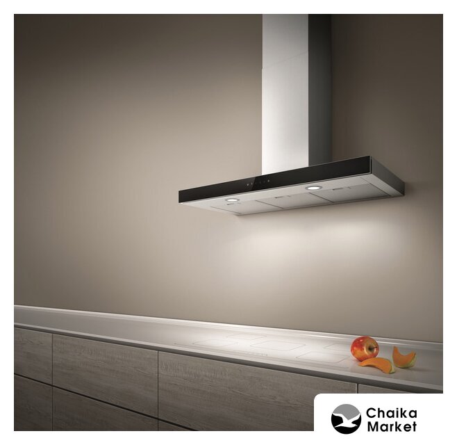 конструкция наклонная, монтаж настенный, ширина 89.8 см, управление сенсорное, производительность вытяжки 559 м³/ч, цвет черный