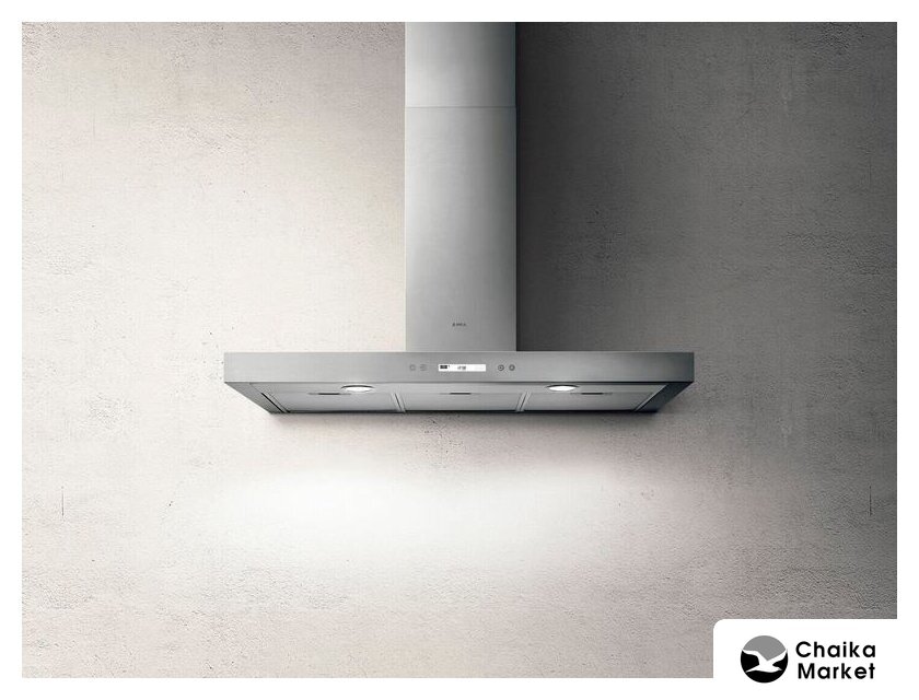 конструкция купольная, монтаж настенный, ширина 89.8 см, управление электронное, производительность мотора 990 м³/ч, цвет нержавеющая сталь