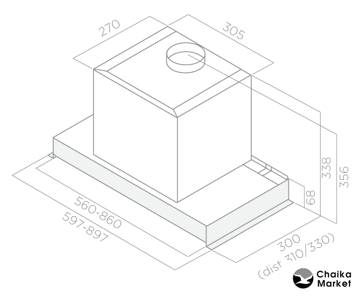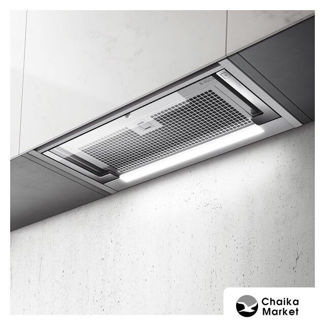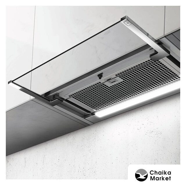 конструкция Т-образная, монтаж настенный, ширина 69.8 см, управление сенсорное, производительность вытяжки 405 м³/ч, производительность мотора 1200 м³/ч, цвет нержавеющая сталь