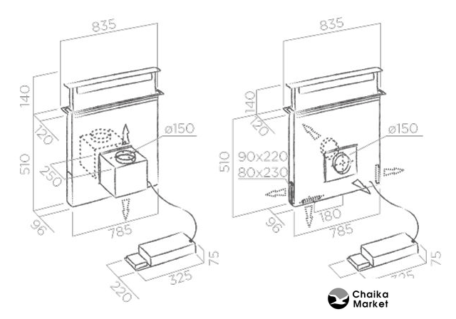 | Максимальная производительность отвода | 515 куб. м/ч |