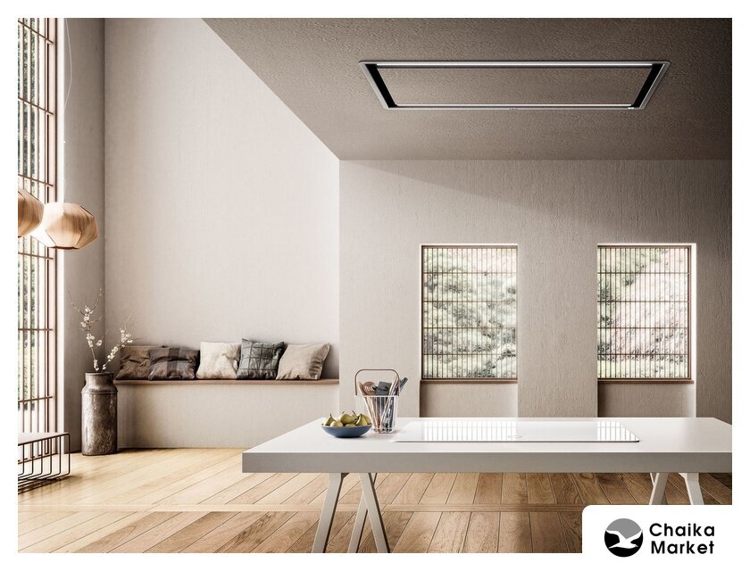 конструкция скрытая, монтаж для встраивания, ширина 100 см, управление дистанционное, производительность вытяжки 465 м³/ч, производительность мотора 1500 м³/ч, цвет белый