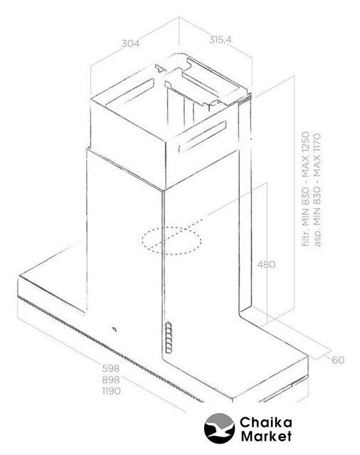 | Минимальная производительность отвода | 125 куб. м/ч |