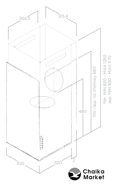 | Минимальная производительность отвода | 125 куб. м/ч |