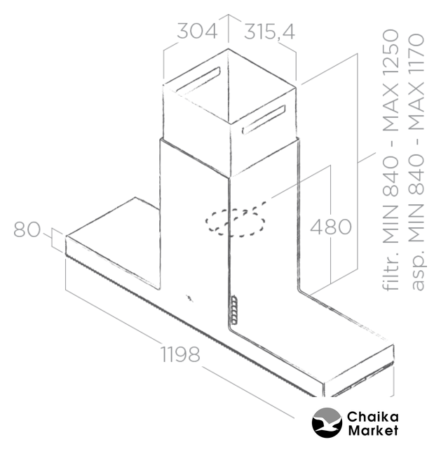 | Минимальная производительность отвода | 125 куб. м/ч |