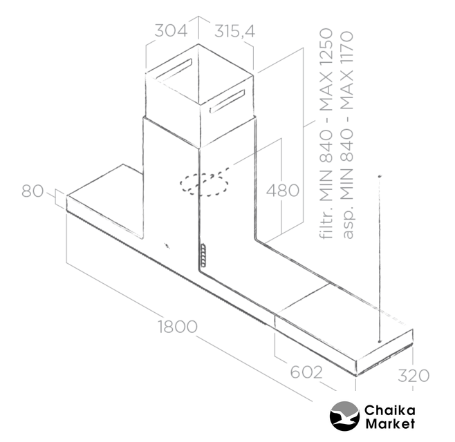 монтаж островной, управление электронное, производительность мотора 1200 м³/ч, ширина 80 см