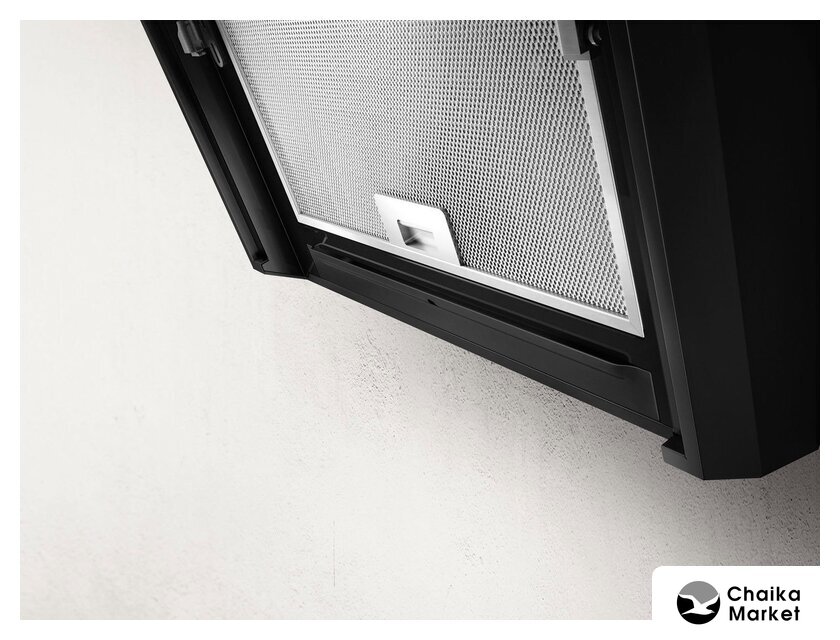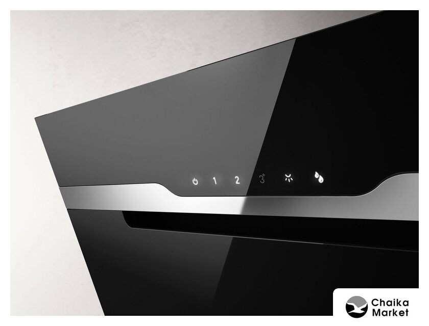 конструкция наклонная, монтаж настенный, ширина 89.8 см, управление сенсорное, производительность вытяжки 450 м³/ч, цвет черный