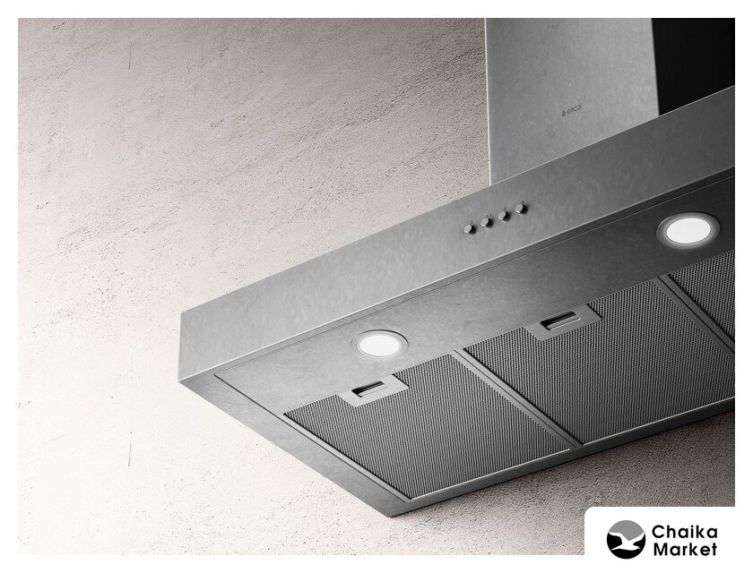 конструкция наклонная, монтаж настенный, ширина 89.8 см, управление сенсорное, производительность вытяжки 603 м³/ч, производительность мотора 1200 м³/ч, цвет серый