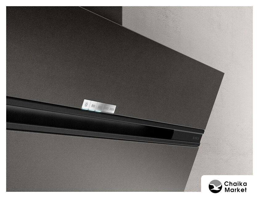 конструкция Т-образная, монтаж настенный, ширина 90 см, управление сенсорное, производительность вытяжки 427 м³/ч, цвет нержавеющая сталь