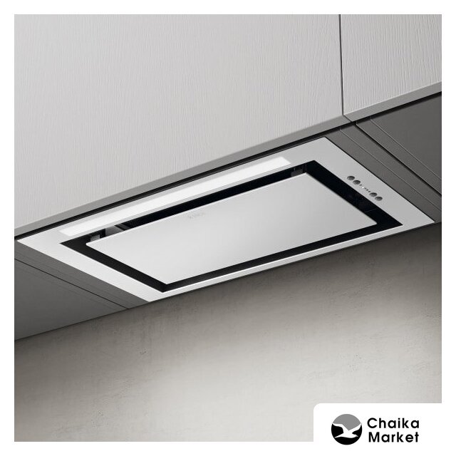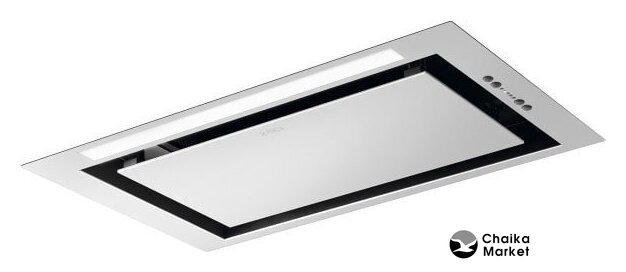 конструкция наклонная, монтаж островной, ширина 90 см, управление сенсорное, производительность мотора 850 м³/ч, цвет белый/серебристый