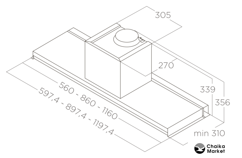 конструкция коробчатая, монтаж настенный, ширина 31 см, управление механическое, производительность мотора 800 м³/ч, цвет золотой