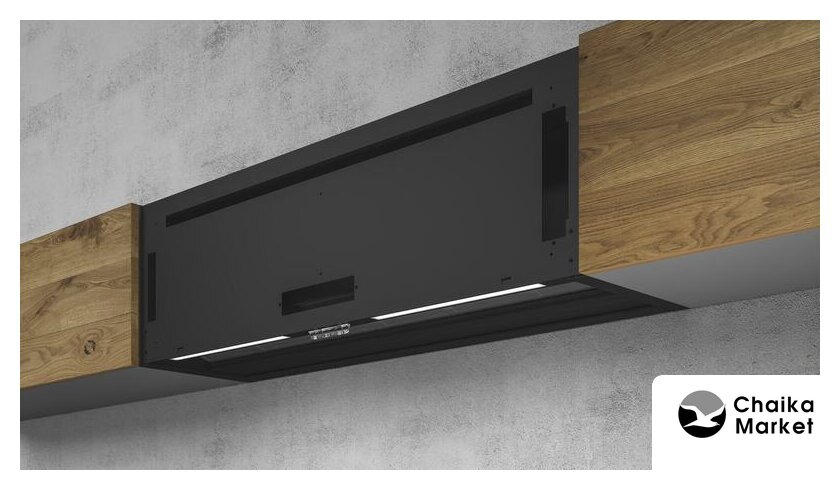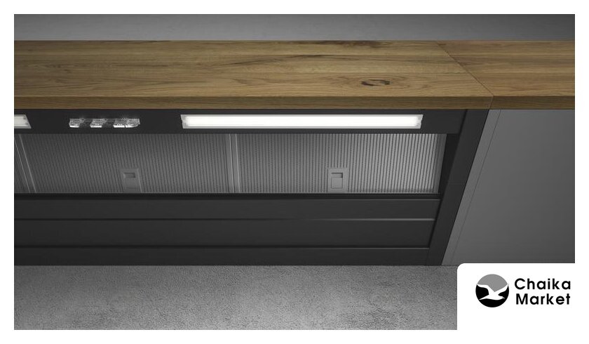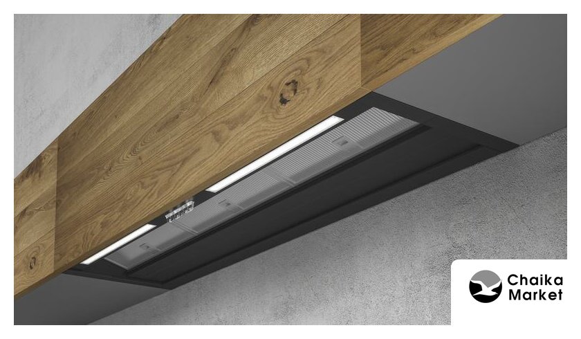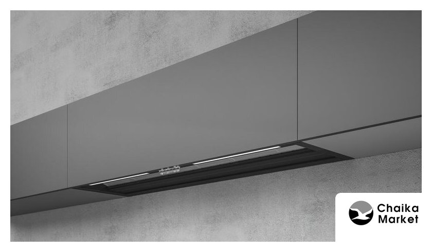 конструкция скрытая, монтаж для встраивания, ширина 53.1 см, управление электронное/кнопочное, производительность вытяжки 800 м³/ч, производительность мотора 1280 м³/ч, цвет нержавеющая сталь