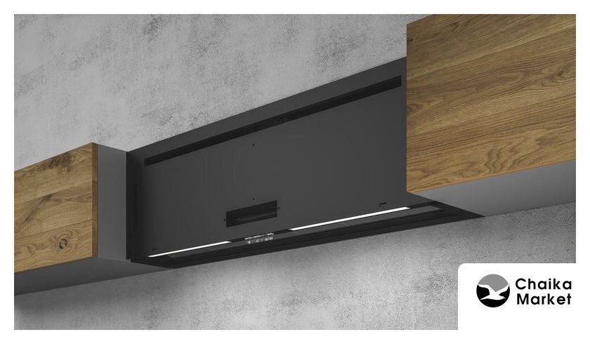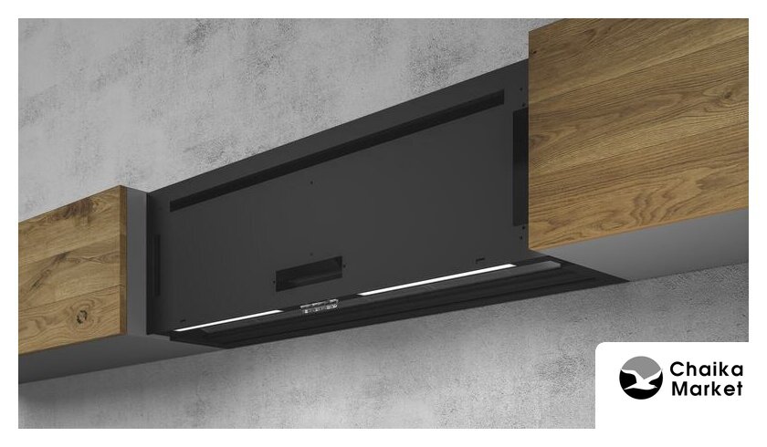 конструкция скрытая, монтаж для встраивания, ширина 77.7 см, управление электронное/кнопочное, производительность мотора 1280 м³/ч, цвет нержавеющая сталь