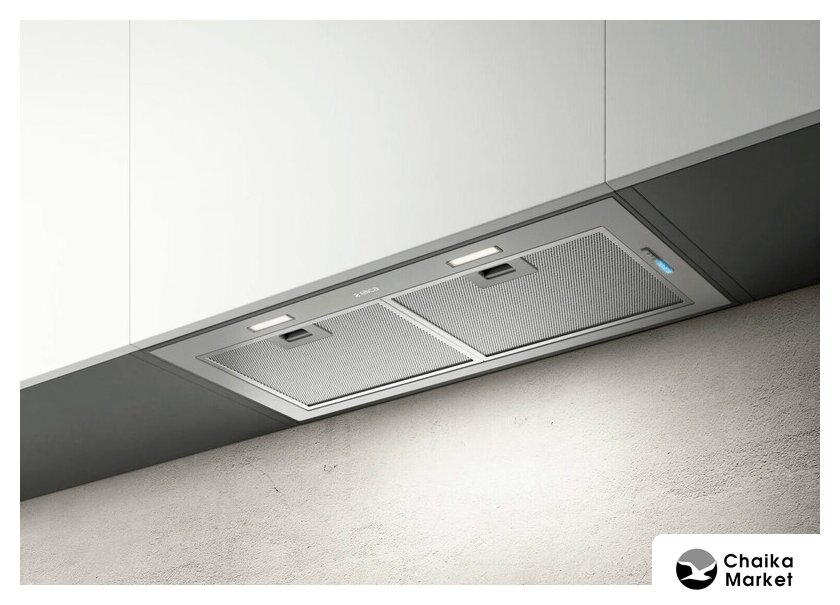конструкция наклонная, монтаж настенный, ширина 59 см, управление сенсорное, производительность мотора 1000 м³/ч, цвет черный