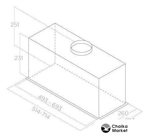 конструкция Т-образная, монтаж настенный, управление электронное/кнопочное, производительность мотора 700 м³/ч, ширина 60 см