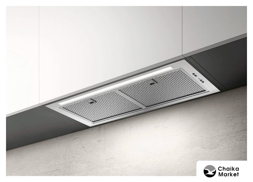 конструкция Т-образная, монтаж настенный, управление электронное/кнопочное, производительность мотора 700 м³/ч, ширина 90 см
