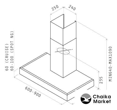 конструкция коробчатая, монтаж настенный, ширина 31 см, управление электронное/кнопочное, производительность мотора 900 м³/ч, цвет нержавеющая сталь