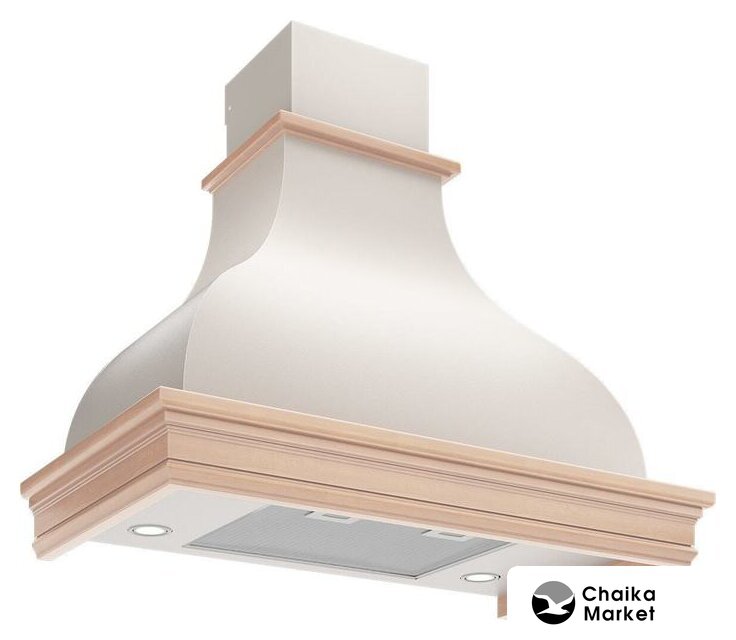 конструкция купольная, монтаж настенный, ширина 90 см, управление механическое/слайдерное, производительность мотора 650 м³/ч, цвет бежевый