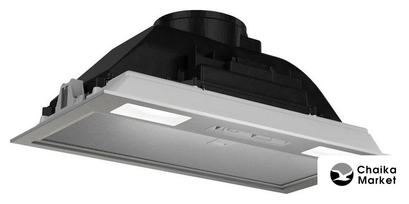 конструкция скрытая, монтаж для встраивания, ширина 59.8 см, управление механическое/кнопочное, производительность мотора 1050 м³/ч, цвет нержавеющая сталь