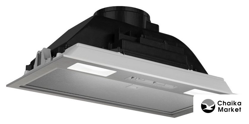 конструкция скрытая, монтаж для встраивания, ширина 59.8 см, управление механическое/кнопочное, производительность мотора 750 м³/ч, цвет черный