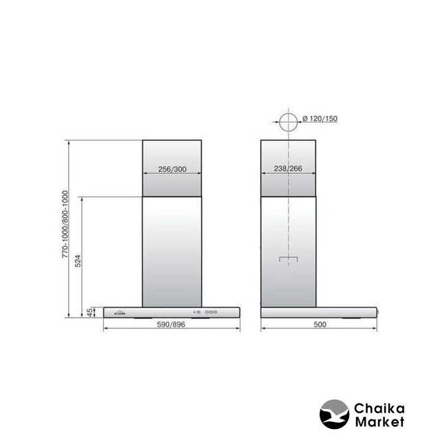 конструкция наклонная, монтаж настенный, управление механическое/кнопочное, производительность мотора 800 м³/ч, ширина 60 см