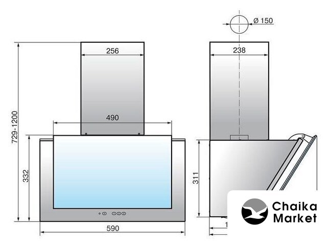 конструкция наклонная, монтаж настенный, управление электронное/кнопочное, производительность мотора 550 м³/ч, ширина 60 см