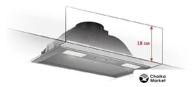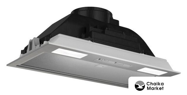 конструкция скрытая, монтаж для встраивания, ширина 59.6 см, управление механическое/кнопочное, производительность мотора 1050 м³/ч, цвет белый