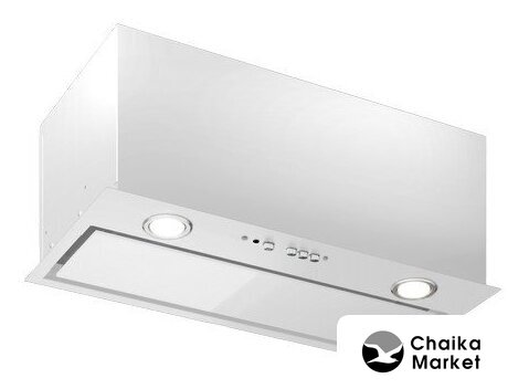 конструкция скрытая, монтаж для встраивания, ширина 60 см, управление механическое/слайдерное, производительность мотора 850 м³/ч, цвет белый