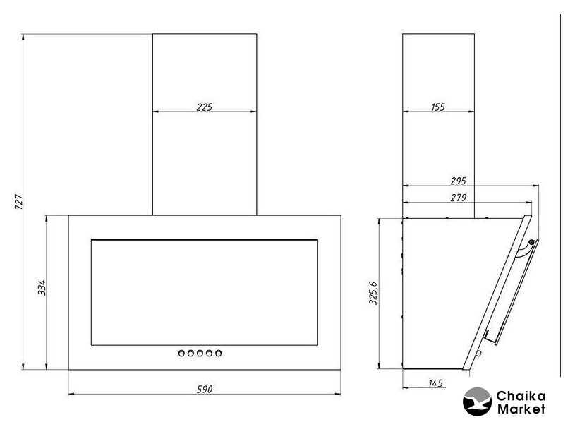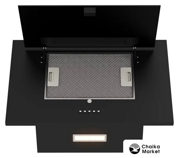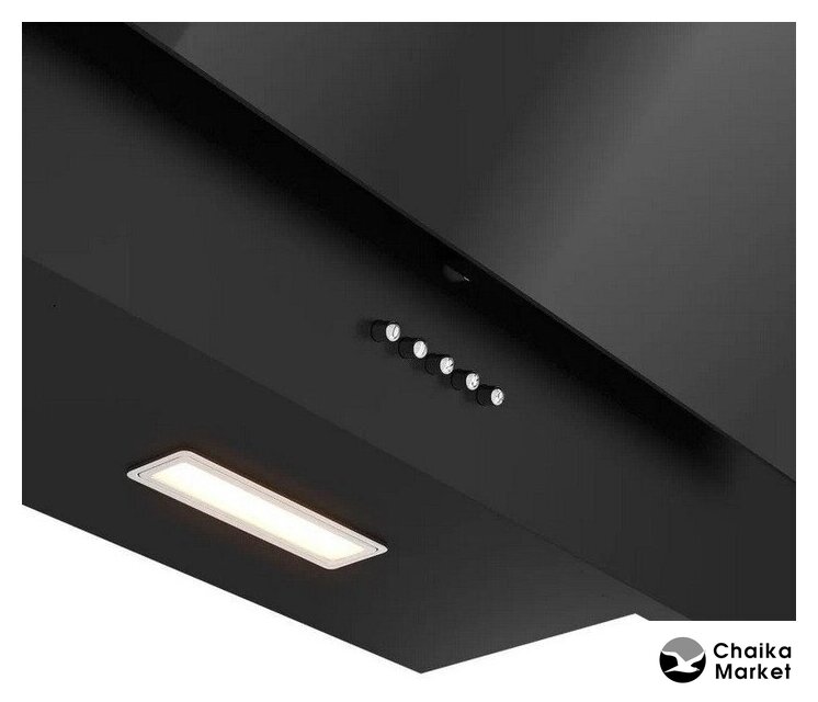 конструкция Т-образная, монтаж настенный, ширина 59.5 см, управление сенсорное/жестами, производительность мотора 1260 м³/ч, цвет черный