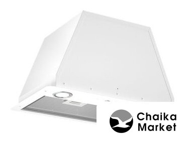 конструкция скрытая, монтаж для встраивания, ширина 59.8 см, управление механическое/кнопочное, производительность мотора 850 м³/ч, цвет белый