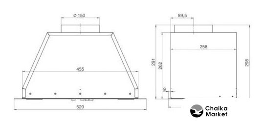 конструкция телескопическая, монтаж для встраивания, управление механическое/кнопочное, производительность мотора 400 м³/ч, ширина 60 см