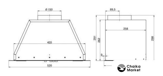 конструкция телескопическая, монтаж для встраивания, управление механическое/кнопочное, производительность мотора 400 м³/ч, ширина 60 см