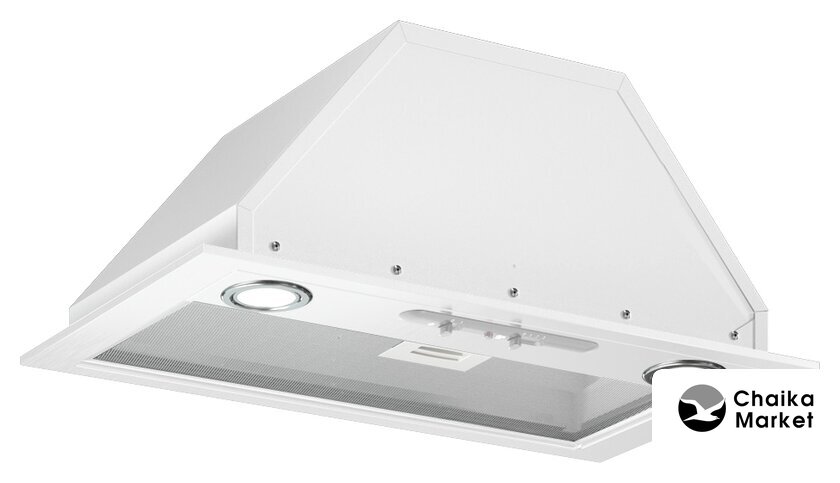 конструкция телескопическая, монтаж для встраивания, ширина 60 см, управление механическое/кнопочное, производительность мотора 430 м³/ч, цвет белый